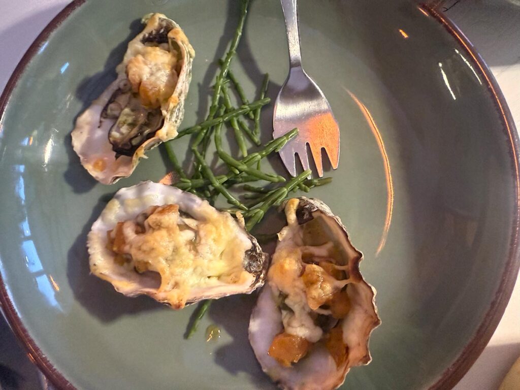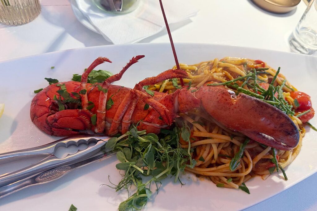 Wir hatten eine Auswahl, die nach einem schönen Abend am Meer klingt: Austern-Variationen, Pasta mit Meeresfrüchten, gebratene Garnelen, dazu das Tagesgericht – Hummer. Klingt üppig. Auf dem Papier sogar ziemlich.